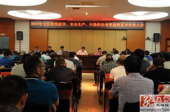 会议传达学习了全省、全市防汛抗旱、安全生产、污染防治攻坚战会议精神。会上,副区长李平分析当前防汛抗灾面临的形势,并就全区防汛抗旱各项工作提出建议。副区长肖小鑫就污染防治攻坚战和“2018年夏季攻势”以及长江经济带“三水共治”、第二次污染源普查等工作做出具体安排,并针对相关问题提出意见。区委常委、常务副区长陈小飞分析了我区安全生产的严峻形势,强调要深刻汲取历史教训,突出重点问题,循环整治安全生产问题。