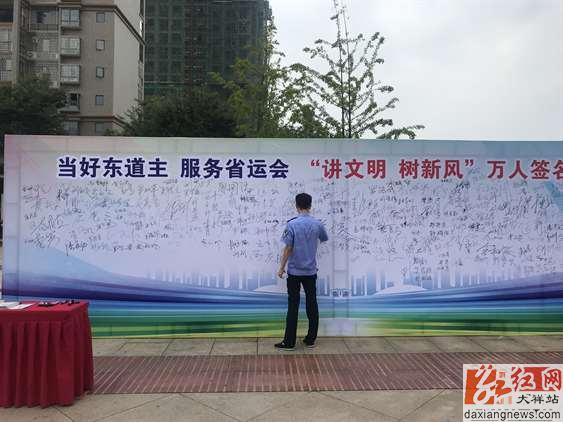 8月27日,我区在西苑公园举办主题活动助力省运会。“当好东道主·办好省运会”2018年邵阳市争创全国文明城市暨广场舞展演活动走进新时代我们舞起来大祥区专场演出现场,欢快的舞曲,炫目的舞步,11支队伍舞蹈演员在舞台上尽情展示自己的风采;在当好东道主 服务省运会“讲文明 树新风”万人签名墙前,市民们积极签名,齐心承诺,争做文明出行的遵守者、整洁环境的呵护者、移风易俗的倡导者。活动现场,来自机关、社区、企业、小区的志愿者队伍也积极开展志愿服务活动。文化志愿者纷纷向市民发放“当好东道主·办好省运会”邵阳宣传资料,开展宣传教育,倡导文明观赛、文明交通、文明节俭新风尚;医疗志愿者为市民免费检查牙齿,并讲解牙齿保健知识;保护环境志愿者捡拾地上掉落的垃圾,劝导乱扔垃圾等不文明行为。