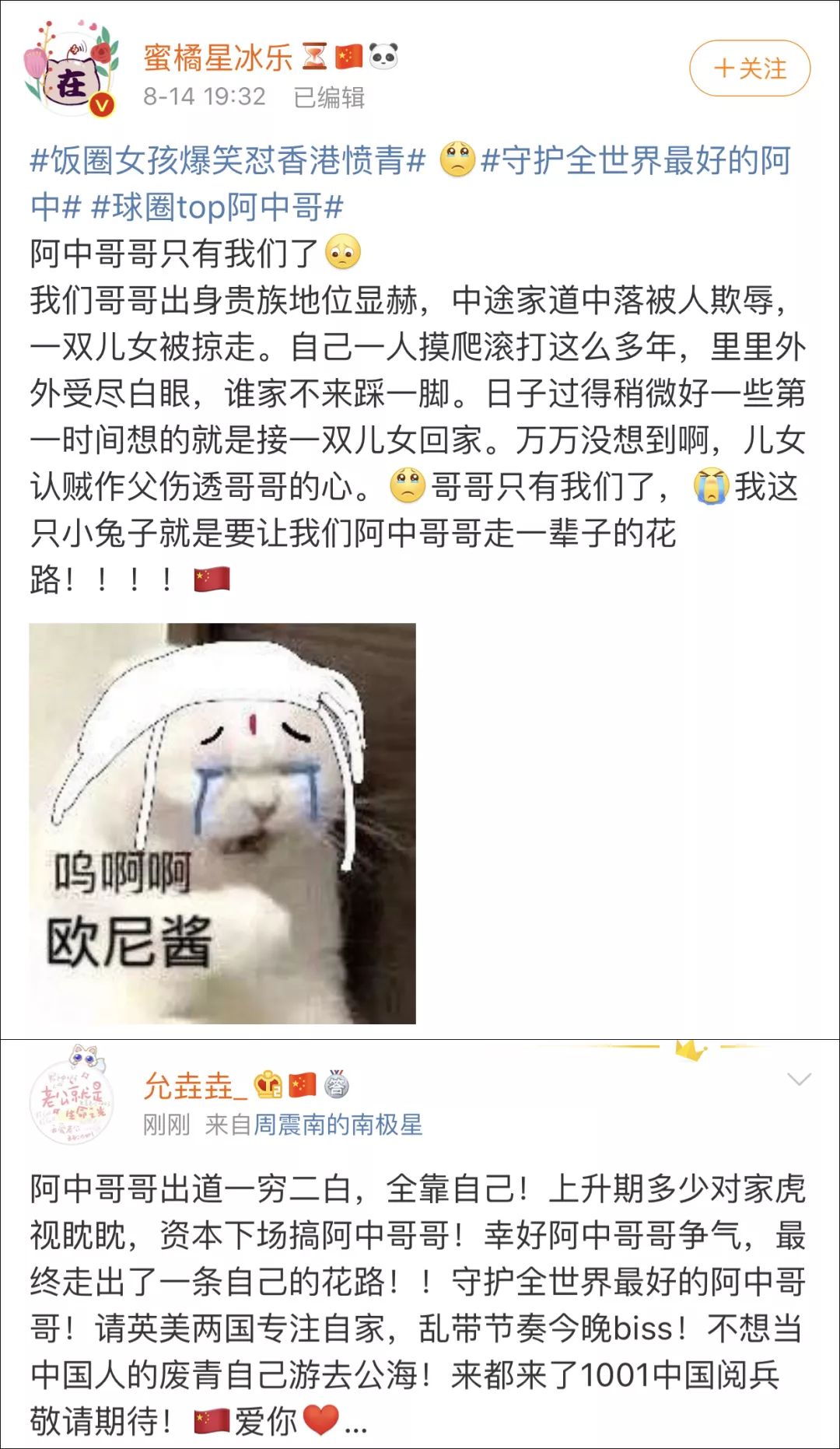 当晚,“饭圈女孩爆笑怼香港愤青”、“守护全世界最好的阿中”、“球圈top阿中哥” 等话题登上热搜,热度持续。