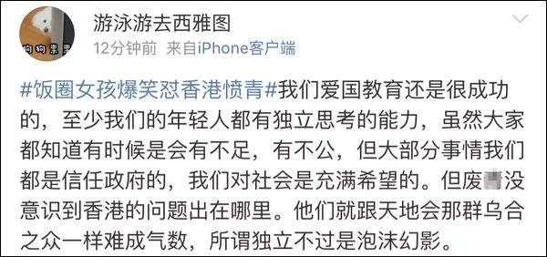谁也想不到,第一个“狂虐”香港示威者的,会是平时因疯狂粉丝行为而被不少网友嫌弃的饭圈女孩。