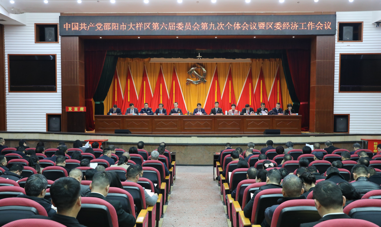 大祥融媒讯:2026年1月28日,中国共产党邵阳市大祥区第六届委员会第九次全体会议暨区委经济工作会议在区行政中心召开。会议深入学习贯彻党的二十大和二十届历次全会精神,全面落实中央经济工作会议及省委、市委相关部署,总结2025年工作,分析当前形势,部署2026年经济任务,审议通过《中共邵阳市大祥区委关于制定邵阳市大祥区国民经济和社会发展第十五个五年规划的建议》和全会决议。全会由区委常委会主持。区委书记王俊受区委常委会委托作工作报告并就经济工作讲话,区委副书记、区长曾峤林作具体部署。