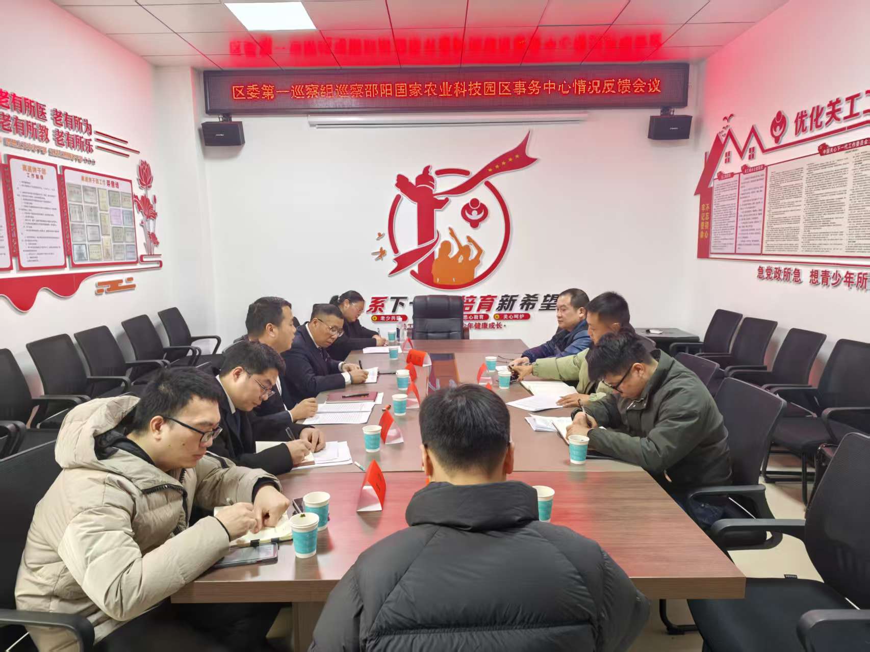 区委第一巡察组有关成员,湖南邵阳国家农业科技园区事务中心领导班子成员,区纪委监委联系室负责人、区纪委监委驻政府办纪检组组长出席会议。园区全体干部职工列席会议。