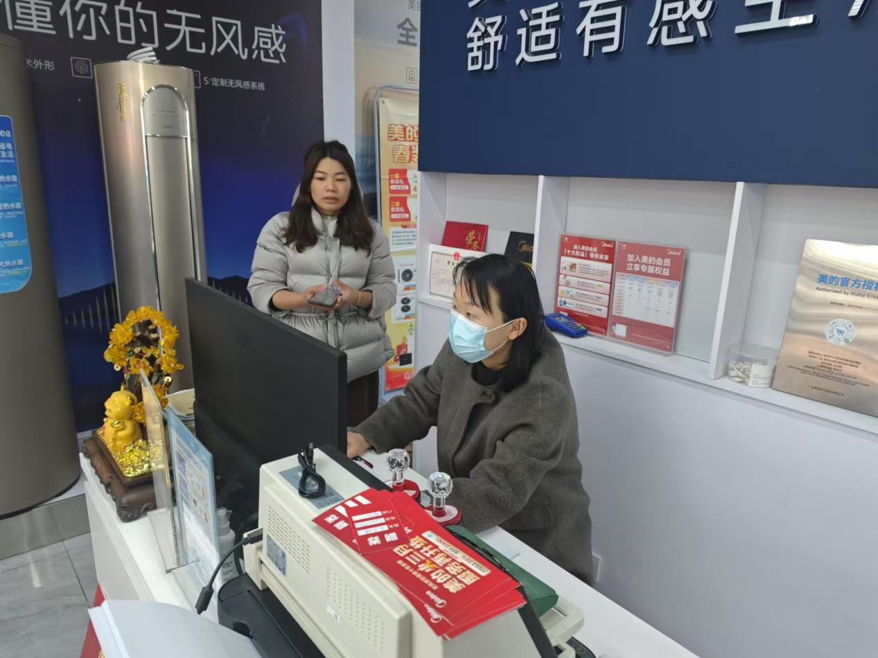 图为审计人员在现场开展"两重两新"的家电补贴调查