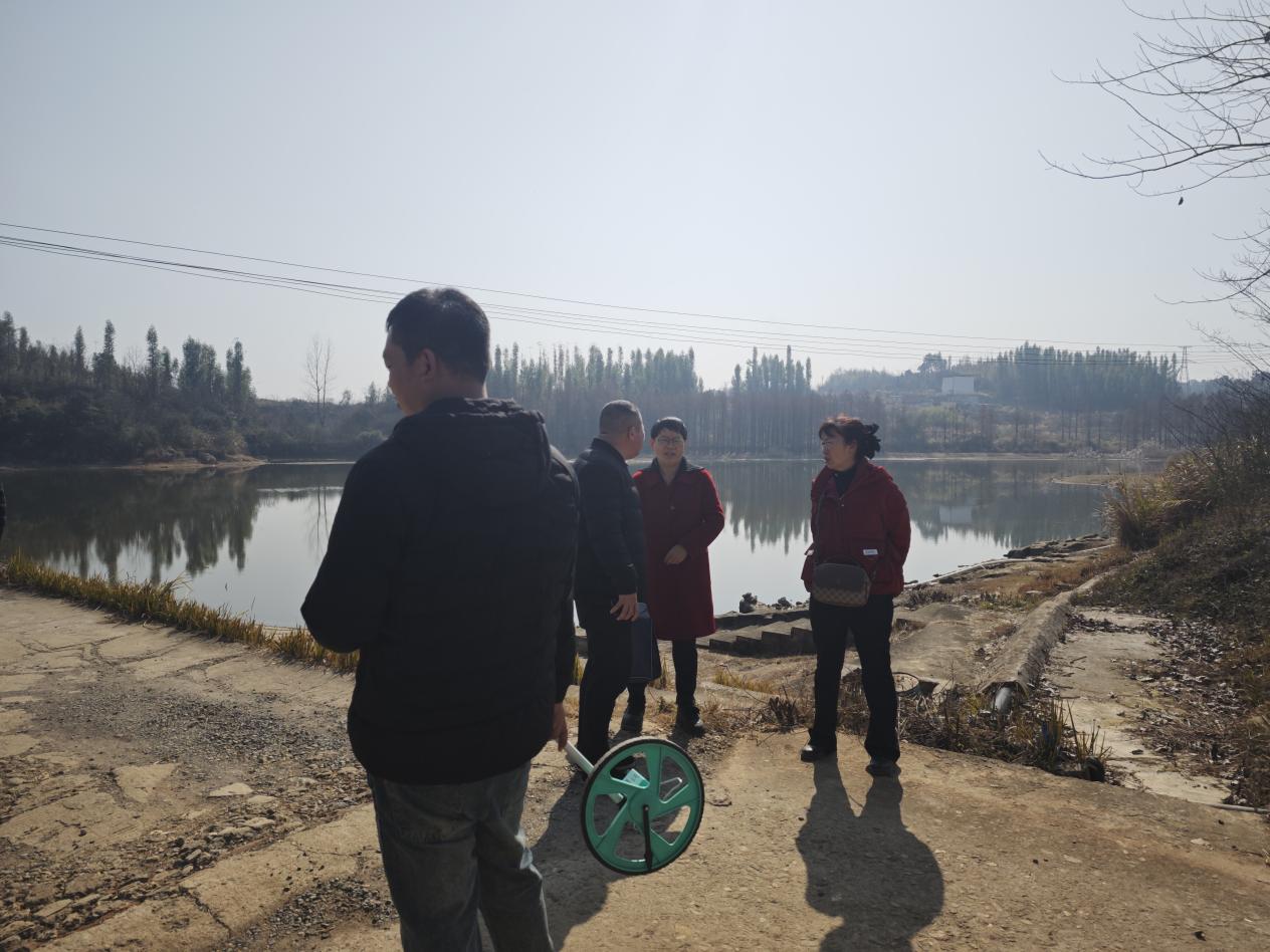 图为区审计人员在水库现场核对审计工程量
