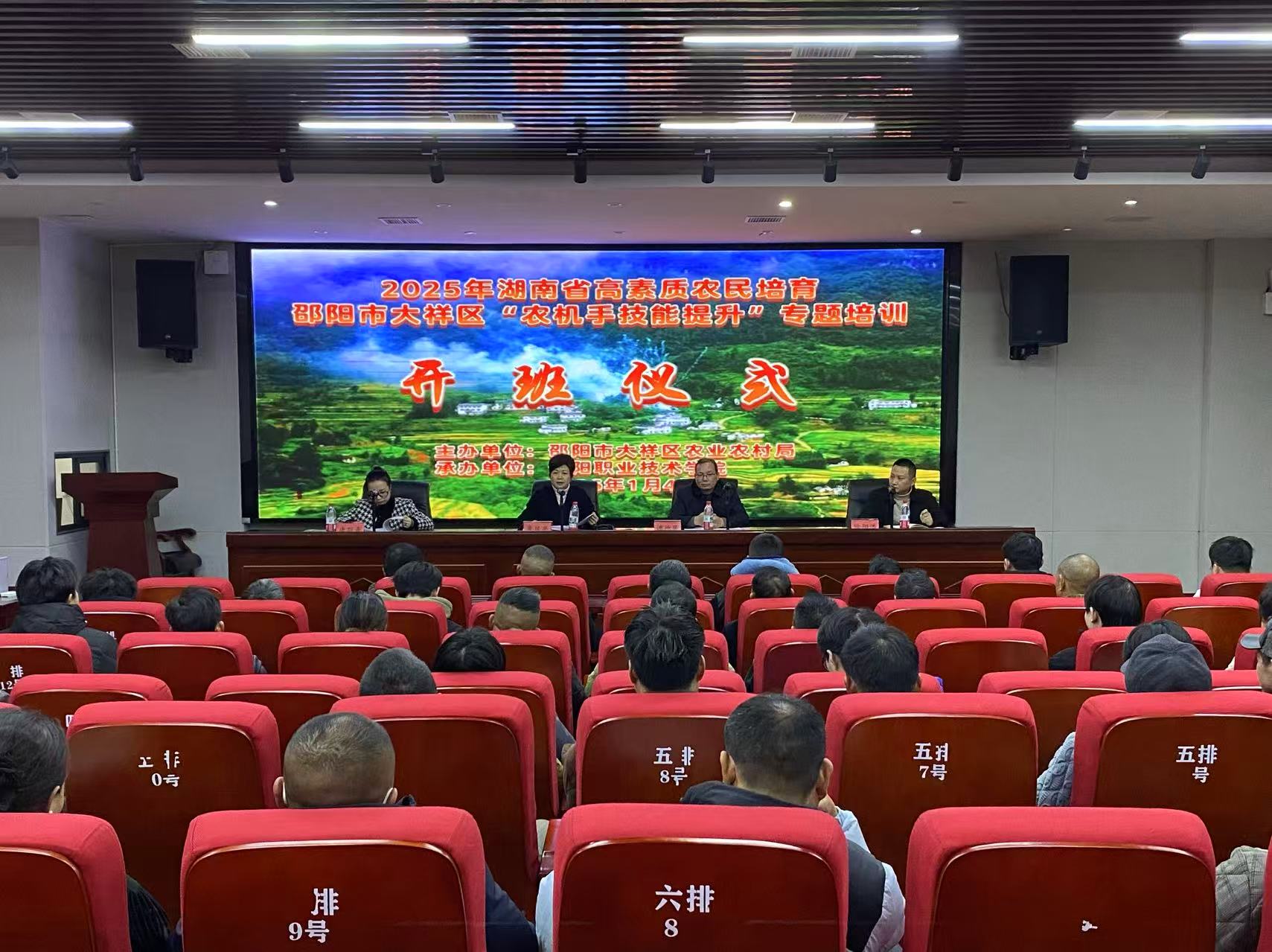 大祥融媒讯:1月4日,大祥区高素质农民“农机手技能提升”专题培训班在邵阳职业技术学院开班。本次培训由区农业农村局主办、邵阳职院承办,旨在加快培育高素质农民队伍,为乡村全面振兴提供人才支撑。