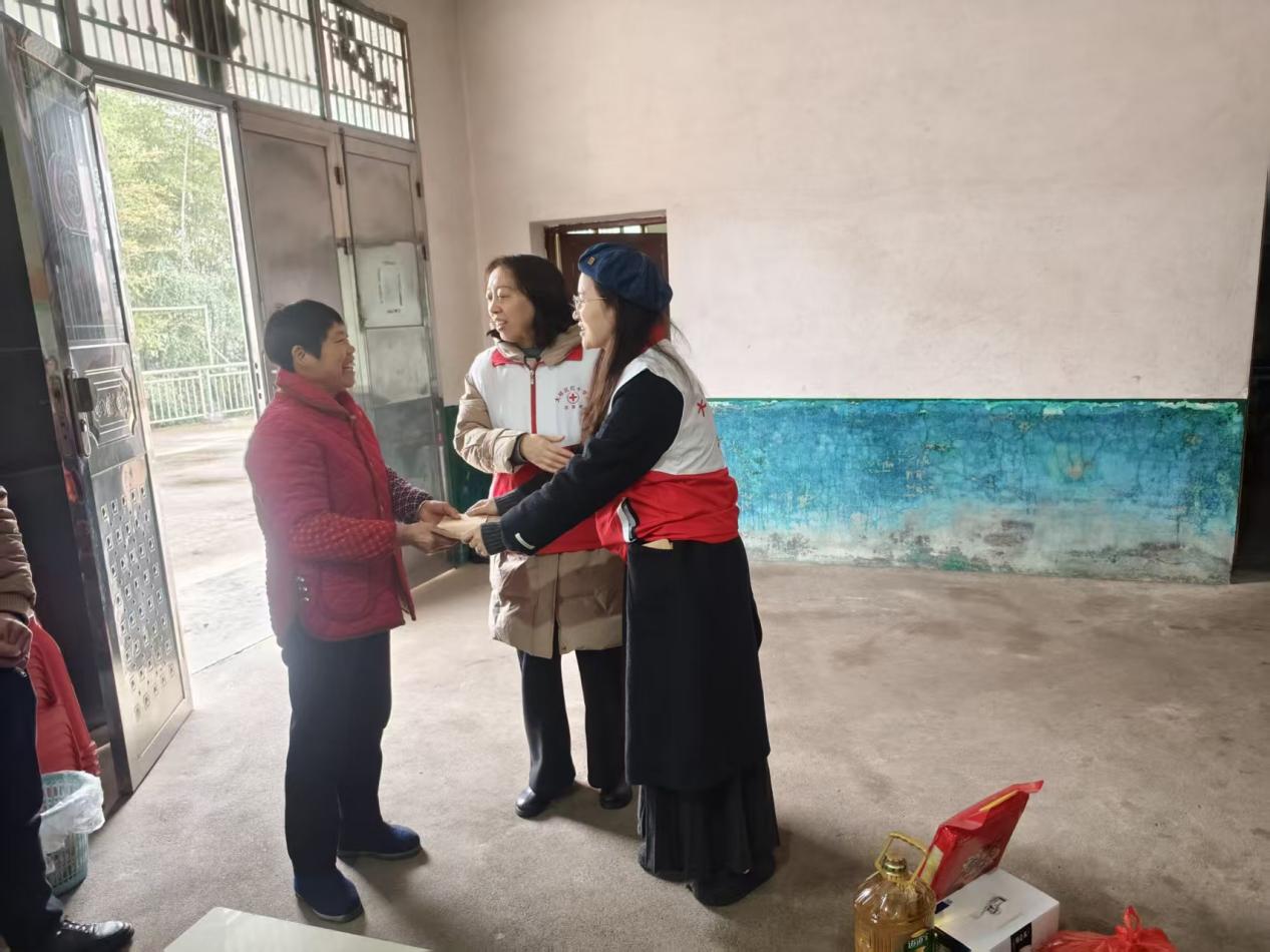“老乡,您好!春节将至,我们代表区、乡红十字会来看望您,给您送来慰问金,提前祝您和家人春节快乐、身体健康!”区红十字会常务副会长紧紧拉住群众的手,语气温暖而恳切,叮嘱他们一定要保重身体,安心过年,用心培养下一代,鼓励他们树立信心、乐观生活。