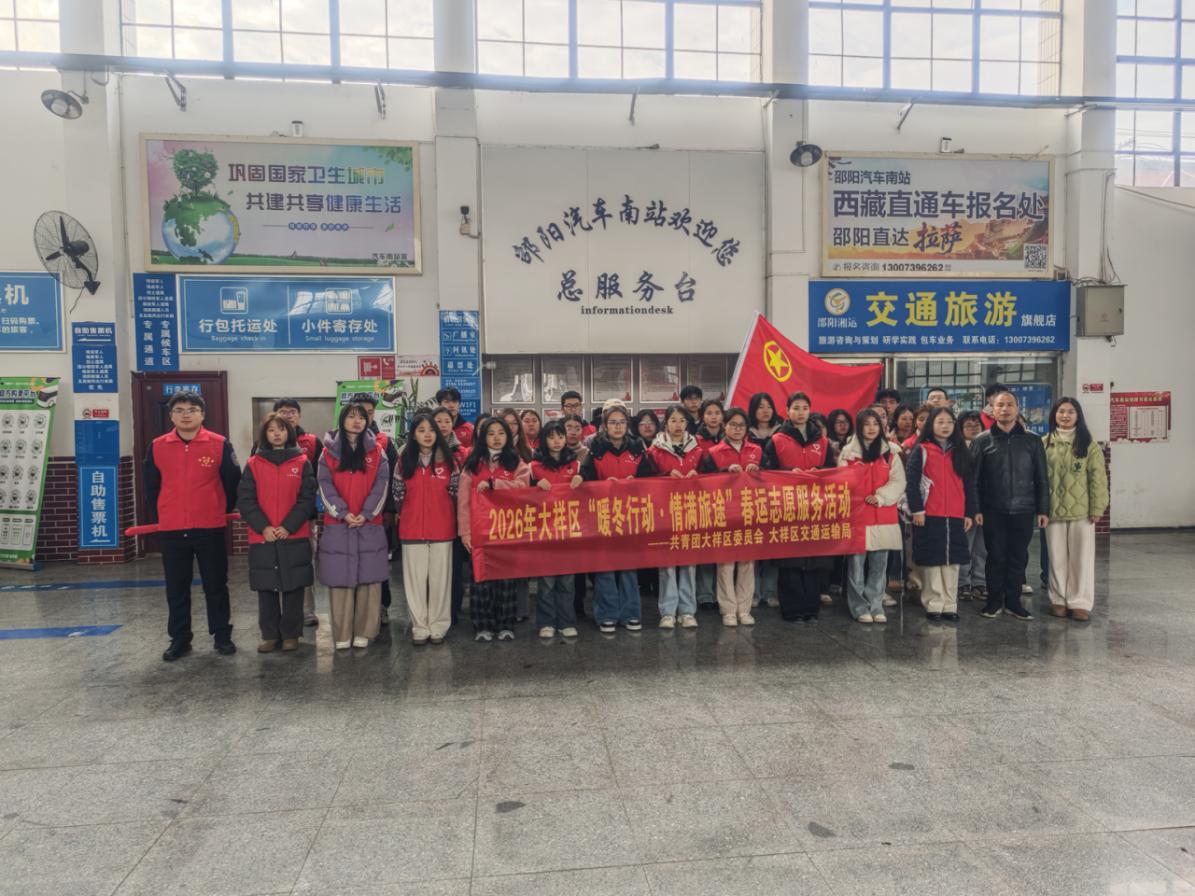 该区加强暖心志愿服务,精准保障重点群体。在邵阳站、湘运集团汽车南站等客运枢纽,“情满旅途”“暖冬行动” 志愿服务同步启动,由团区委招募的30余名团员青年、社会工作者,组成了车站志愿者服务队,为司乘人员提供咨询引导、行李搬运、应急帮扶等服务。各枢纽增设安检通道与临时导向标识,保留人工售票窗口和特殊人群检票通道,配齐应急药品、充电设施等便民物资,全方位提升旅客出行体验。