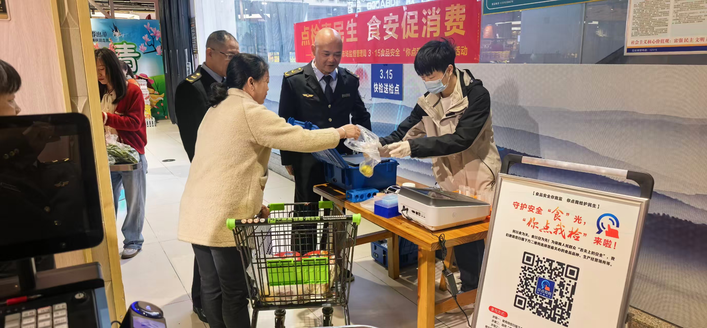 大祥融媒讯:近日,邵阳市大祥区市场监督管理局围绕“优化消费环境,提升消费品质”主题,组织开展2026年“3·15”国际消费者权益日现场宣传活动。活动融合食品安全“你点我检”惠民服务,旨在增强群众维权意识,营造安全放心的消费环境。
