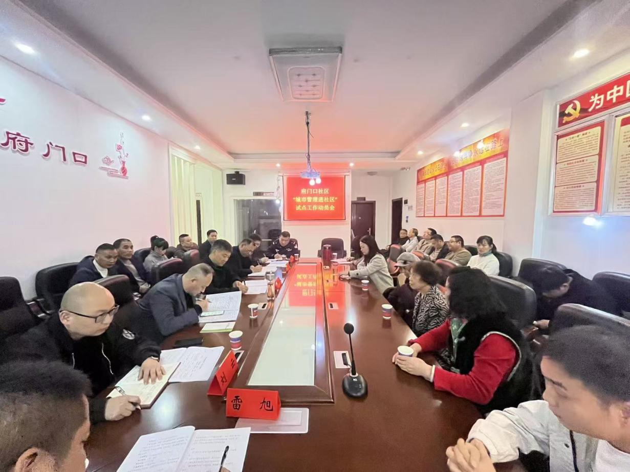 大祥融媒讯:11月25日,府门口社区召开“城市管理进社区”试点工作动员会。区委副书记、区长曾峤林,市生态环境局四级调研员岳文雄出席会议,市区相关部门、中心街道有关干部、社区部分居民、商户、党员代表参与。