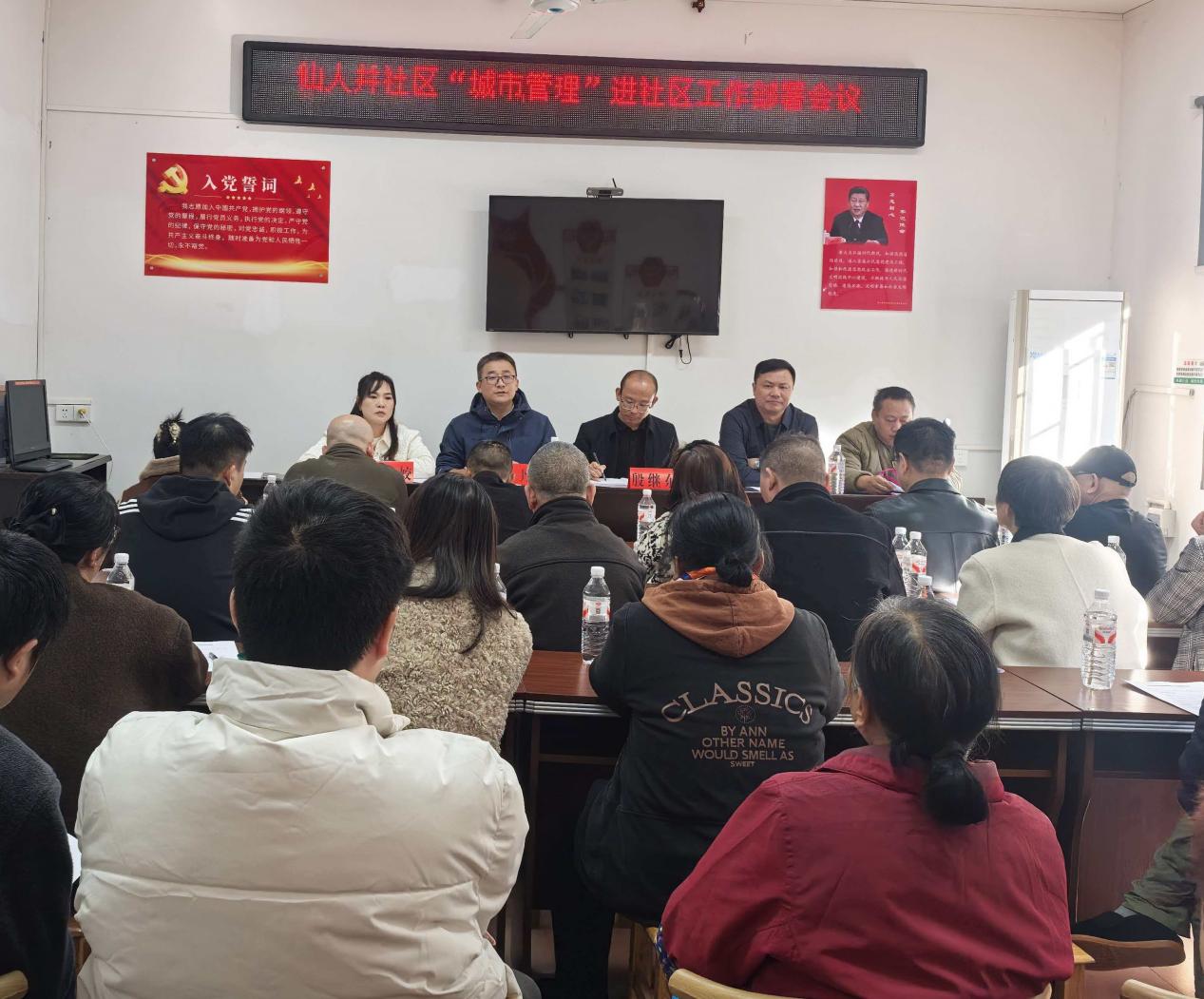 大祥融媒讯:11月26日下午,仙人井社区“城市管理进社区”工作部署会在社区会议室召开。区委副书记、统战部部长殷继东出席会议。区委组织部相关领导、城北街道主要负责同志、街道工作人员、社区“两委”干部、社区居民代表、商户代表、志愿者代表参加会议。